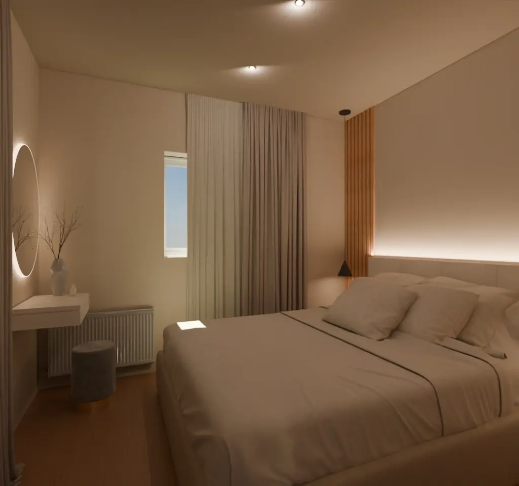 Επιπλέον, δημιουργήθηκε ένα επιπλέον υπνοδωμάτιο και ένας ξεχωριστός χώρος ντουλάπας–βεστιαρίου, που ενίσχυσαν τη λειτουργικότητα και την άνεση της κατοικίας.